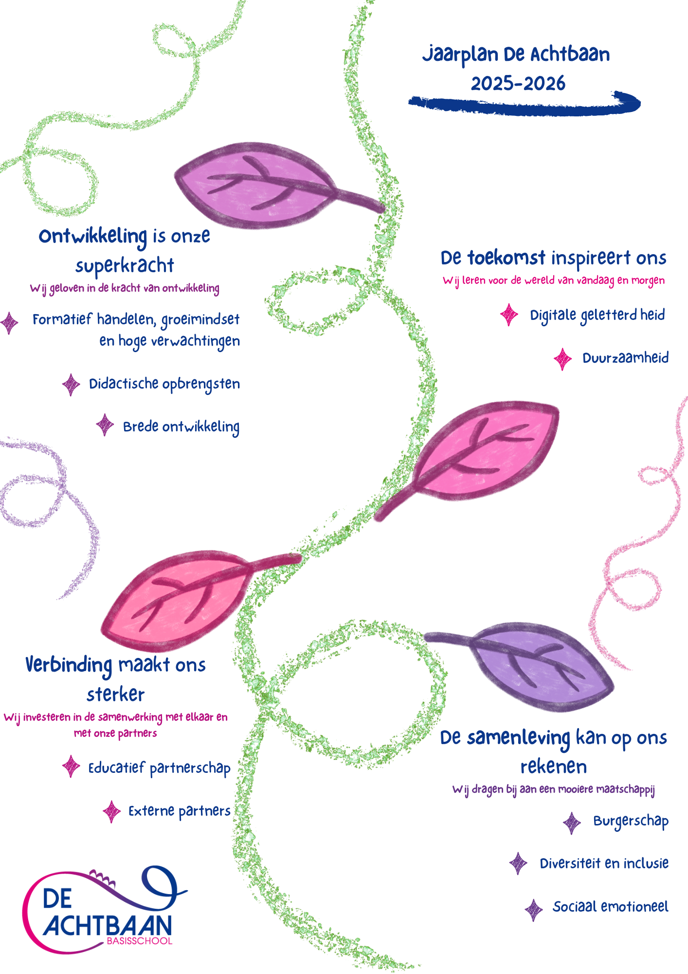 In het schoolplan staat beschreven hoe we ons onderwijs in de komende jaren vormgeven. Wat onze speerpunten zijn en welke opbrengsten we ambiƫren.